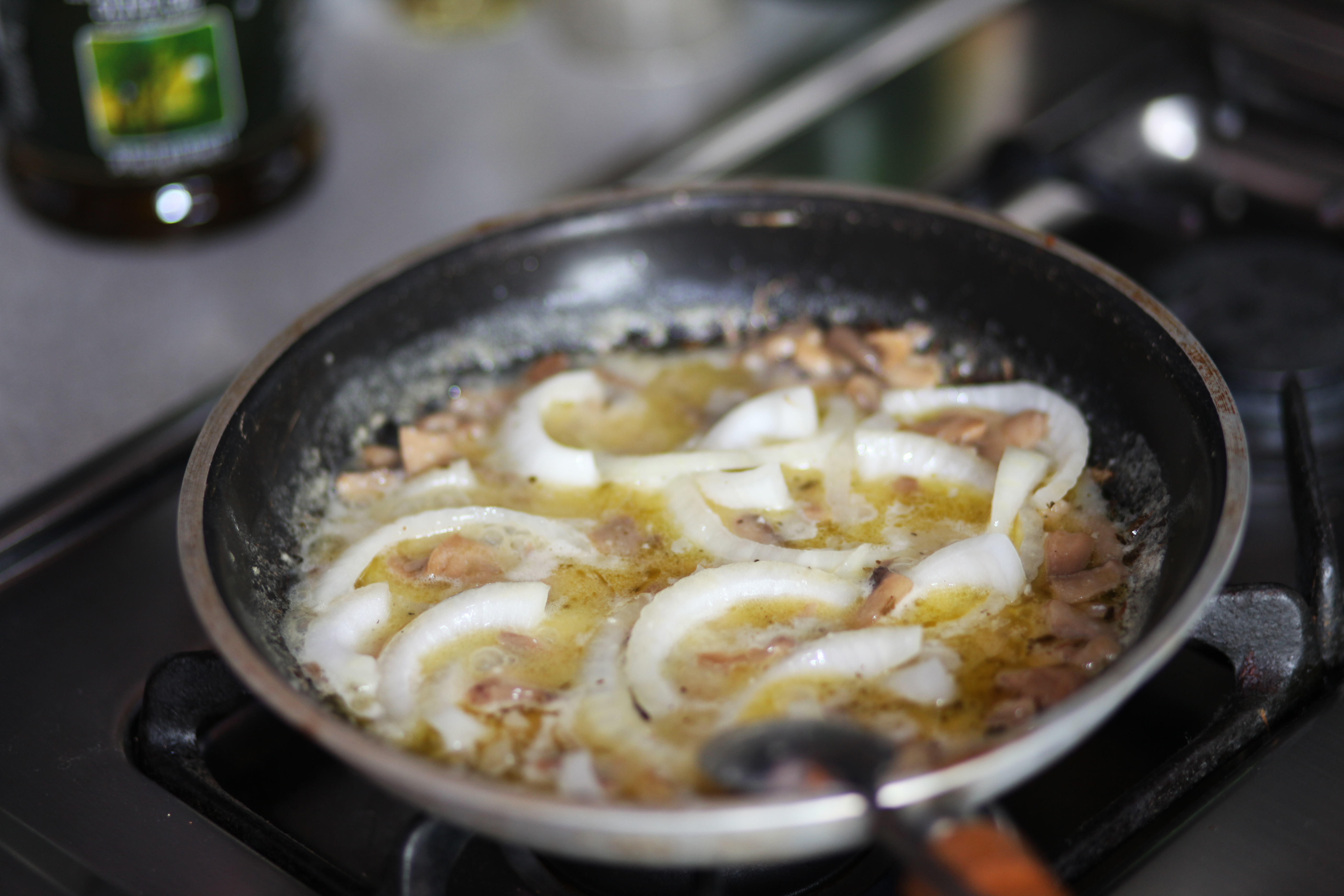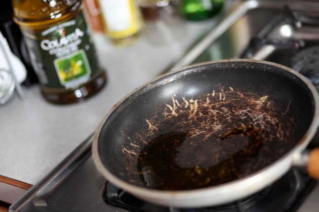 Throw a dash of olive oil in a fry pan.